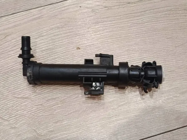 Washer nozzle for front left headlight for Skoda Octavia III (5E), OEM part number 5E0955965C. Compatible with models produced from 2013 to 2019. The part is used and comes with VAT invoice. It is an original part with the manufacturer's logo (OE). The installation side is front left.