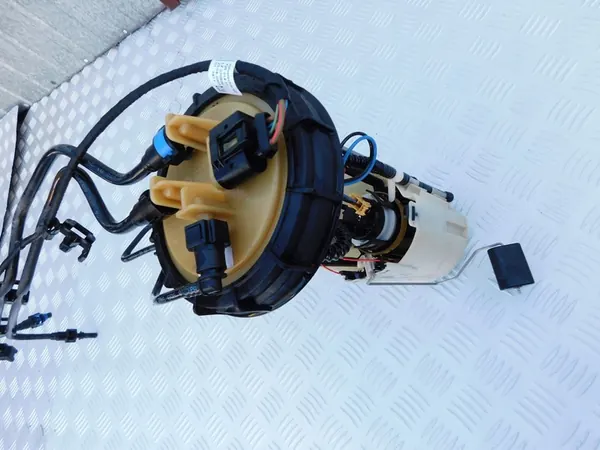 Fuel pump float for Mercedes Sprinter 906, compatible with models from 2006 to 2018. This is an original part in used condition, fully functional, and includes the complete fuel tank basket for versions with Webasto, featuring three tubes. The part is marked before shipping and comes from disassembly. Actual photos represent the condition of the item.
