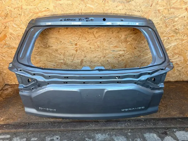 Used rear tailgate for SsangYong Korando C300 IV 19-. The tailgate is straight and unbroken, intended for painting. It has not been painted or filled. The paint code is unknown. Damage is marked on the tailgate, with images showing the damage. If only one image is present, it indicates that no other damages were noticed. The tailgate will be sent in the condition shown in the photos, neither more bare nor more complete.