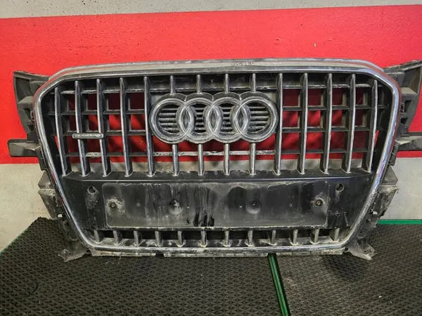 Grill for Audi Q5 8R. Model: 2.0 TDI. Transmission: Manual. Paint Code: LZ7S. Year of Production: 2014. Engine Code: CGLC. Part shows normal signs of use.
