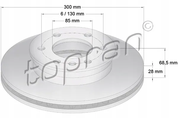 Brake disc Topran 111 652, compatible with various OEM numbers including 09.9508.10, 10-80087/VAI, 17730/ABS, and many others. Please verify compatibility based on your vehicle model. Topran is a German company with over 50 years of experience in automotive parts sales, offering quality parts at accessible prices. This product is recommended for those who value good quality. Below are reference images: