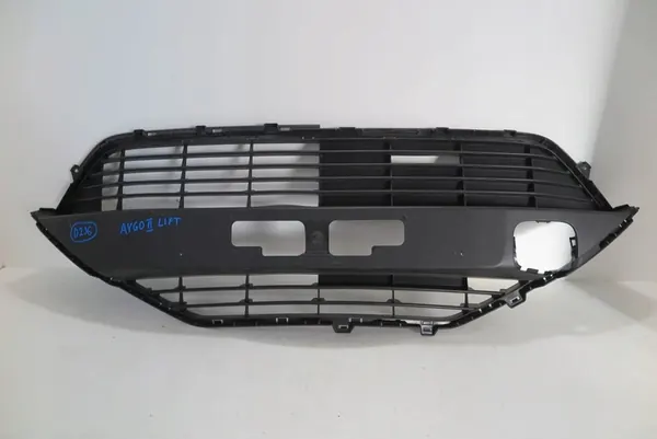 Front bumper grille for Toyota Aygo II, part number 53112-0H170. This used part is in the condition shown in the photos. The vehicle model is Toyota Aygo AB40, with a 1KR-FE 1.0 L engine producing 68 HP. The production year is 2021. Additional details include a VAT invoice available upon request. The part is designed for the front side of the vehicle. Stock number D236.