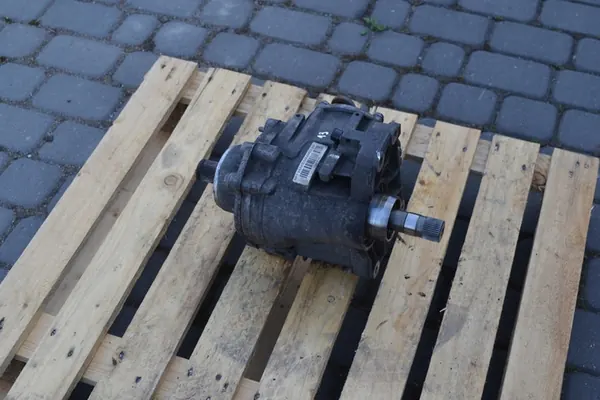 Transfer case for Volkswagen Tiguan 2009, part number 0A6409053AG. This part was removed from a fully functional vehicle and is in used condition. It is not refurbished. The offered parts come from the dismantling of legal tested vehicles. Real photos are provided, showing the exact item for sale.