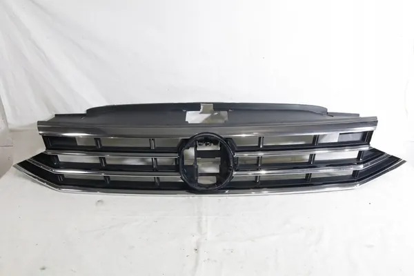 Upper grill for VW Passat B8 (3g 3g0 Lift) manufactured from 2019 to 2023. Condition: used original. The grill is missing one lower clip, but the remaining clips are intact (see photos). The chrome trim is in very good condition, not repaired or scratched, with all original clips intact (see photos).