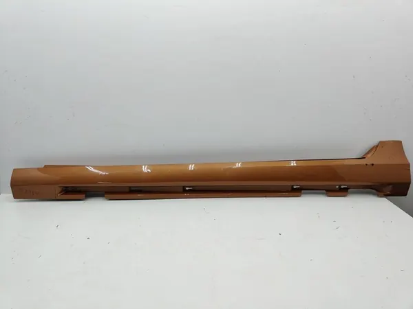 Used left door sill for Volvo S60 II, part number 32270136. The condition is used, and any damages or scratches are indicated with markers. The part is in black color and is suitable for passenger cars. It is an original part from Volvo with the manufacturer's logo (OE). The European version is available. Please note that if the paint code is not provided, the part may require repainting.