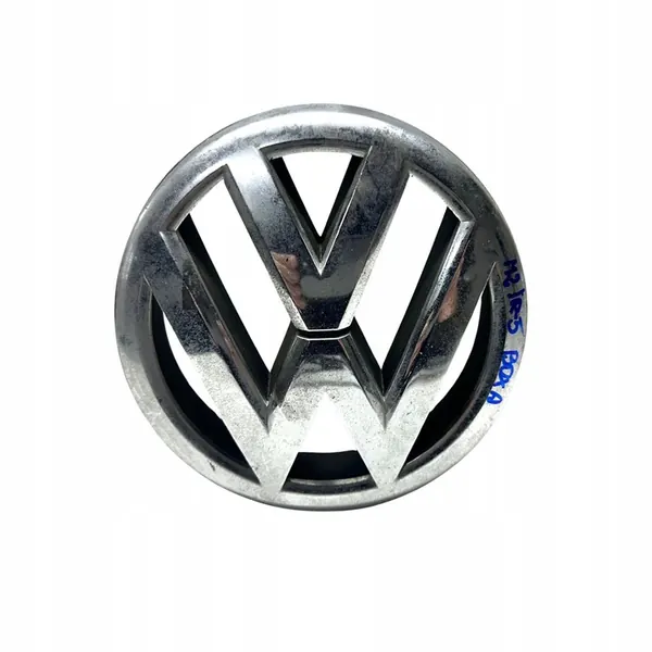 This listing is for an original front grill emblem for the Volkswagen Golf VI, part number 5K0853601F. It is suitable for vehicles produced from 2008 to 2012. The part is used and in accordance with the description. It is advisable to visually compare the old part with the images provided or check the part numbers. The condition of the item matches the description. The photo shows the actual item and its condition.