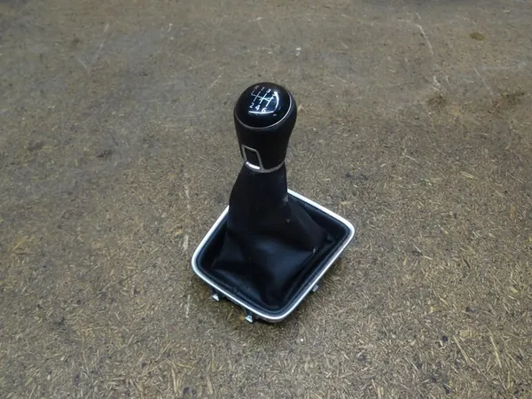 Used gear knob with gaiter and frame compatible with VOLKSWAGEN SHARAN 7N, production years 2010 - 2020, part number: 5N0711113S. The item shows signs of use and any imperfections are depicted in the photos. The images reflect the actual condition of the item.