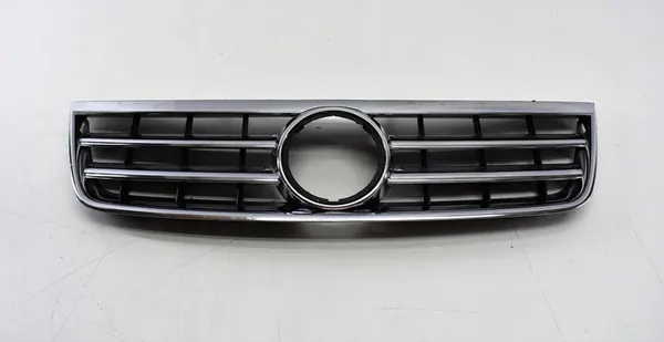 Grill for VW Touareg 7L6 available. The item is in very good condition, as shown in the photos. It is an original part with complete mounting and one bracket professionally glued. The chrome is in perfect condition, without cracks. If any repairs were made, they were done professionally. This item is used and comes with a VAT invoice. The part number is 7L6853651B, and it weighs 12 kg. Suitable for the front installation.