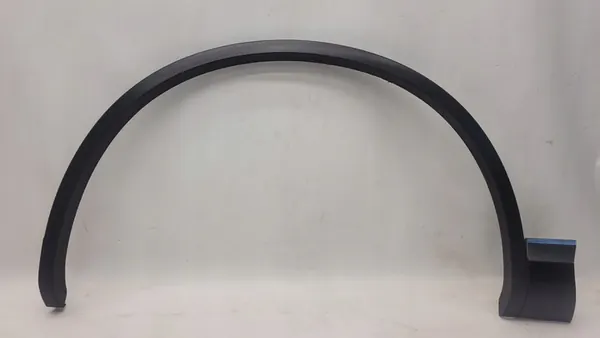 Front left fender trim for VW Touareg II, model year 2010. The part is used and has two damaged clips. It is an original part recommended for use. The trim is in need of repainting. OEM part number is 7P6853717F, produced by Volkswagen OE. Suitable for passenger cars and is of original quality (OE) with the manufacturer's logo.