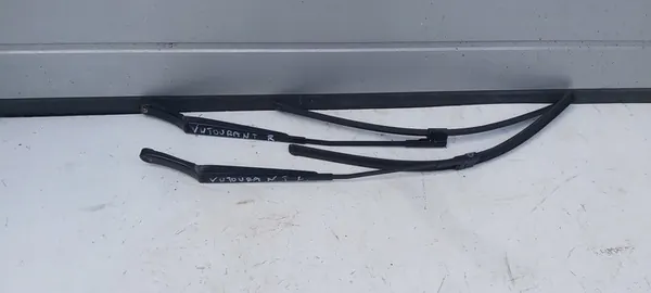 Offering front wiper arms for the VW Touran I. This includes the left and right wiper arms with OEM part numbers 1T0955409A and 1T0955410A. The item is used and is a genuine Volkswagen OE part. It is designed for European versions of the vehicle.